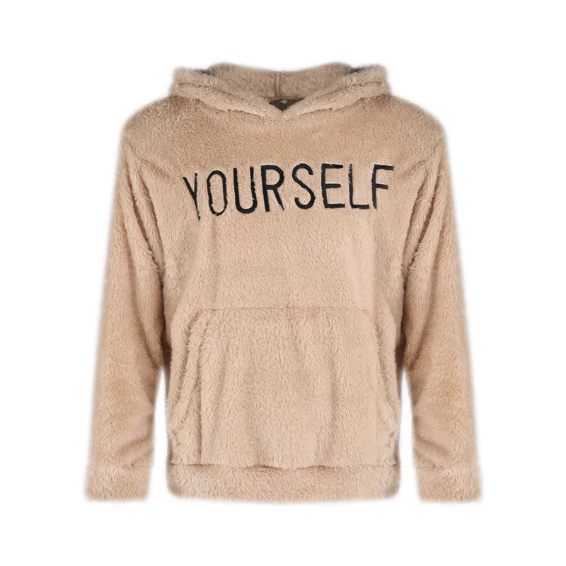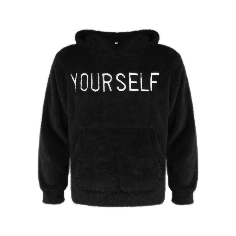 Moletom masculino de lã felpudo, pulôver casual com estampa de letras com bolso canguru